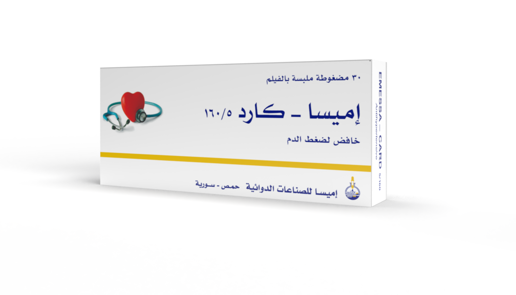 التركيب: كل مضغوطة إميسا-كارد 5/80 ملبسة بالفيلم تحتوي 5 ملغ أملوديبين بيسيلات و 80 ملغ فالسارتان.