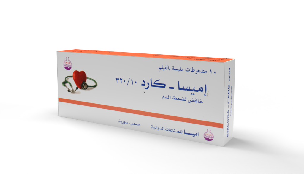 كل مضغوطة إميسا-كارد 10/320 ملبسة بالفيلم تحتوي 10 ملغ أملوديبين بيسيلات و 320 ملغ فالسارتان.