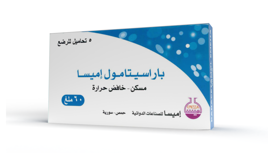 باراسيتامول إميسا 60 : كل تحميلة تحوي 60 ملغ باراسيتامول.