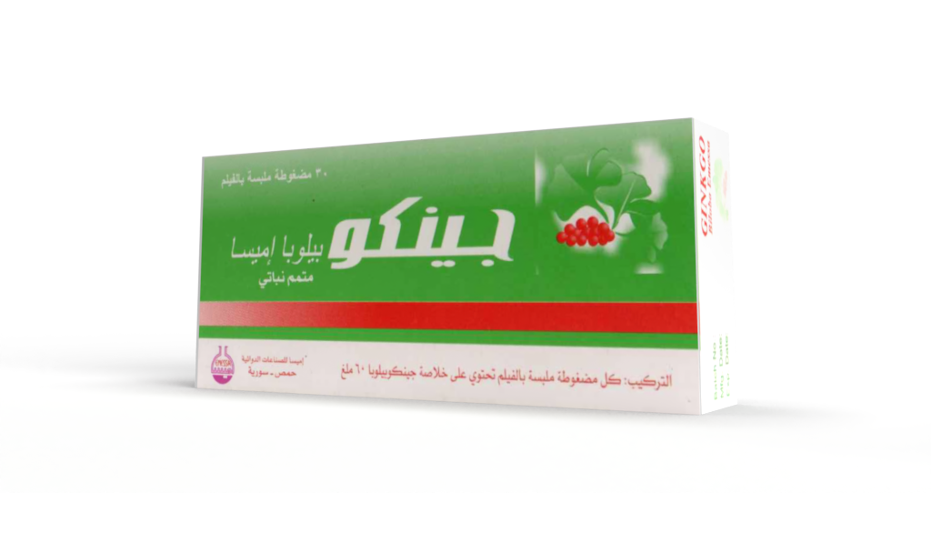 علبة تحتوي على 30 مضغوطة ملبسة من جينكوبيلوبا إميسا.