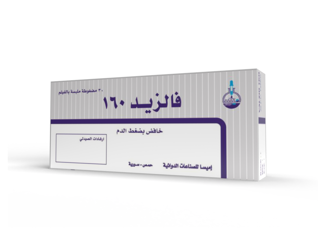 فالزيد 160/25: علبة كرتونية تحوي 20 مضغوطة فالزيد 160/25 ملبسة بالفيلم ضمن ظرفين بليستر.
