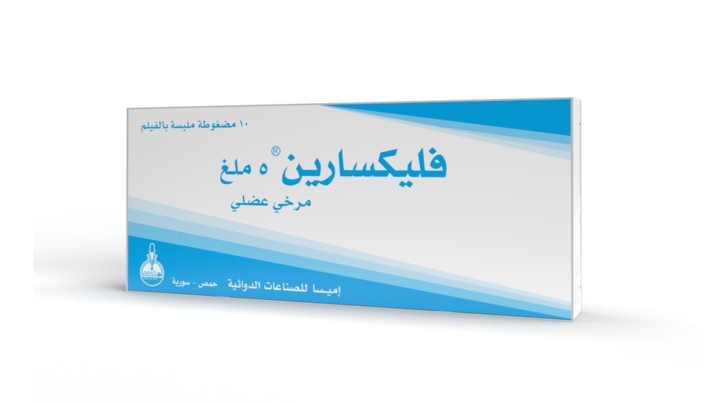 التركيب: كل مضغوطة ملبسة بالفيلم فليكسارين 5 تحتوي سيكلوبنزابرين هيدروكلوريد 5 ملغ.