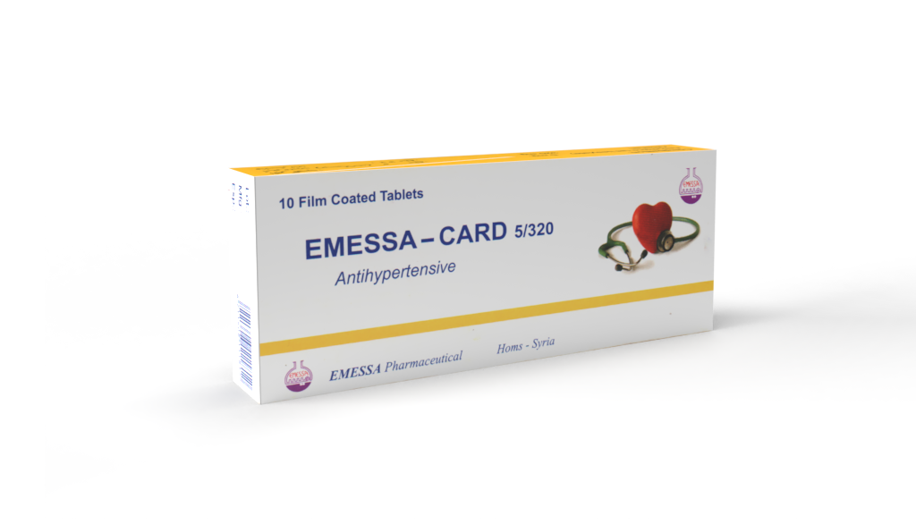 Each EMESSA-CARD 320/5 F.Ctd. Tab. contains 5 mg amlodipine (as besylate) and 320 mg valsartan.